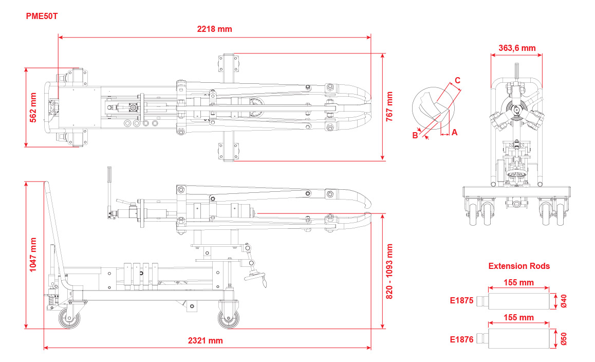 PME50TE modeli elektrikli hidrolik ünite ile sunulur. Bu ünite iki hızlıdır, düşük basınçta hızlı hareket imkânı sunar. Otomatik değişken debisi sayesinde ise yüksek basınçta kontrollü ilerleme sağlar.