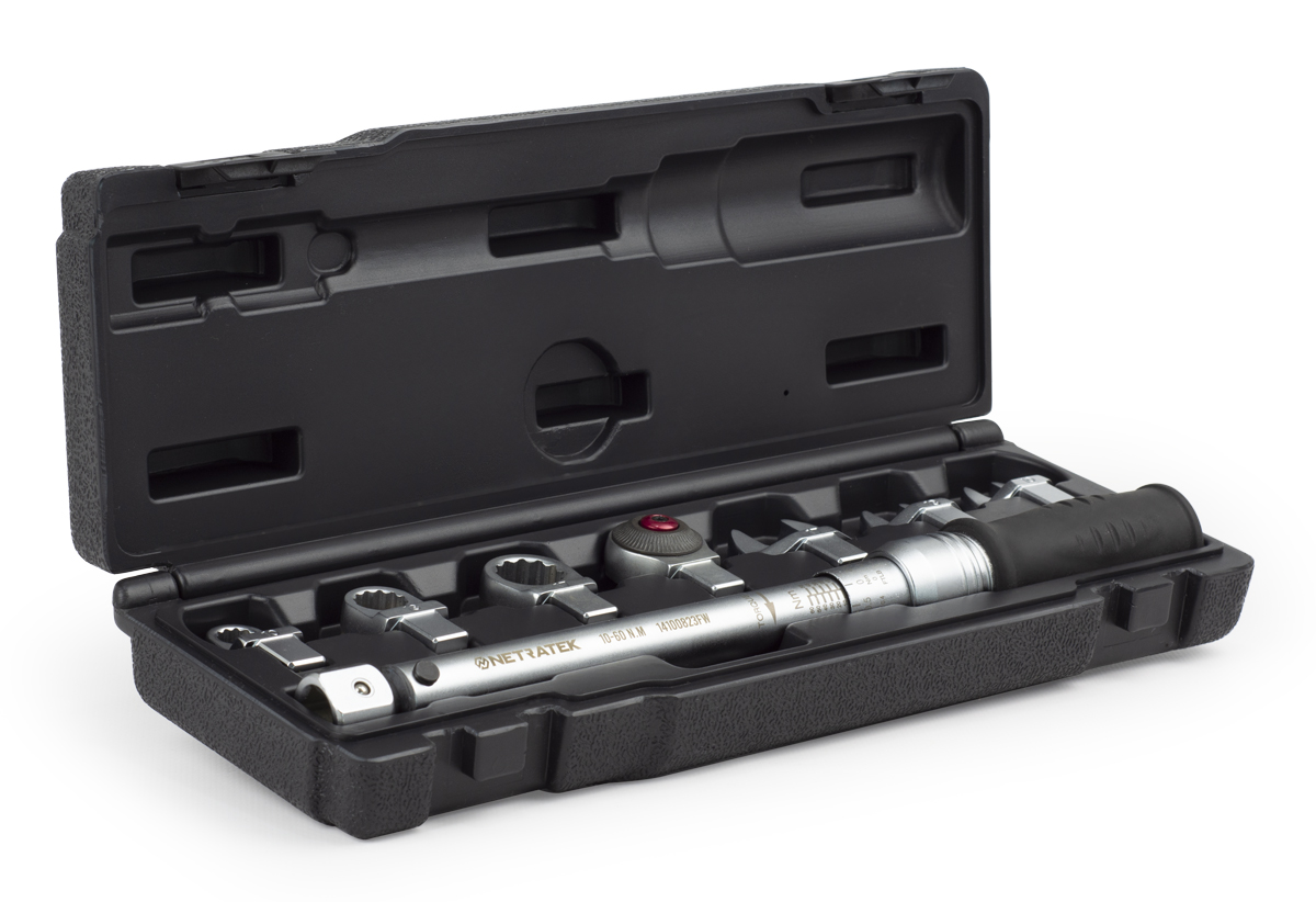 10-60 N.m kapasite aralığında tork ayar imkanı sunan bu tork anahtarı seti içerisinde 9x12mm girişli açık ağız, kapalı yıldız ve 3/8″ cırcır uç bulunmaktadır. Set içeriğindeki cırcır ile tork anahtarı lokma takılarak da kullanılabilmektedir. Toplam 8 parçadan oluşan tork anahtarı seti plastik çanta ile sevk edilir. Sevkiyat içeriğinde fabrikanın sunduğu InHouse kalibrasyon belgesi de bulunmaktadır.