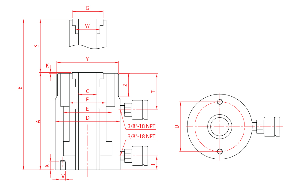 - 20-200 ton seçenekli 700 bar hidrolik silindirler