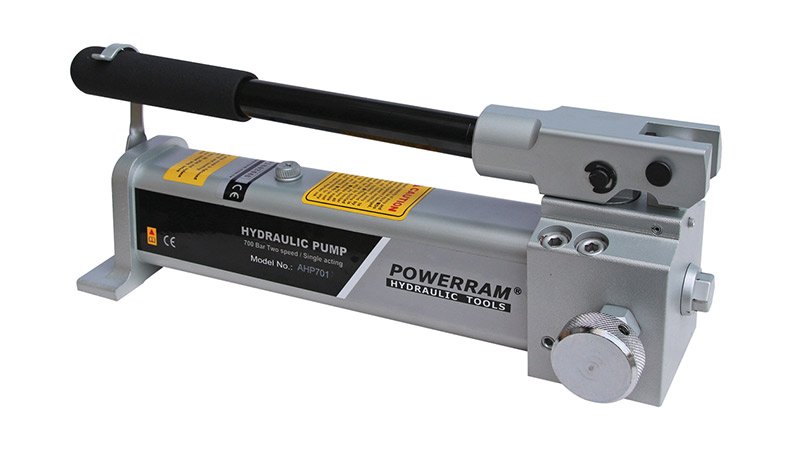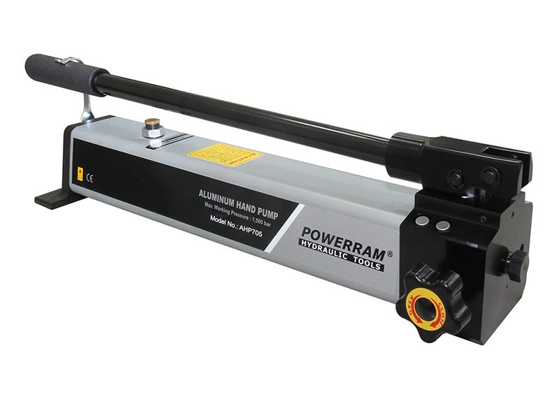 Powerram AHP serisi hidrolik el pompaları komple alüminyumdan imal edilir. Çelikten imal el pompalarına nazaran daha hafif ve kullanışı kolaydır. Ağır sanayi şartlarında uzun yıllar bakım gerektirmeden kullanım imkânı sunan 700 bar hidrolik pompalar yağ dolu şekilde kullanıma hazır olarak sevk edilir. Dahili emniyet valfi ile maksimum çalışma basıncının üzerine çıkmaz, güvenli çalışma ortamı sağlar. Hidrolik el pompası basınç emniyet valfi sayesinde maksimum çalışma basıncından sonra sistemdeki yağı tanka tahliye eder.