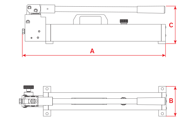 - 1600 ve 2800 Bar olmak üzere iki farklı hidrolik el pompası