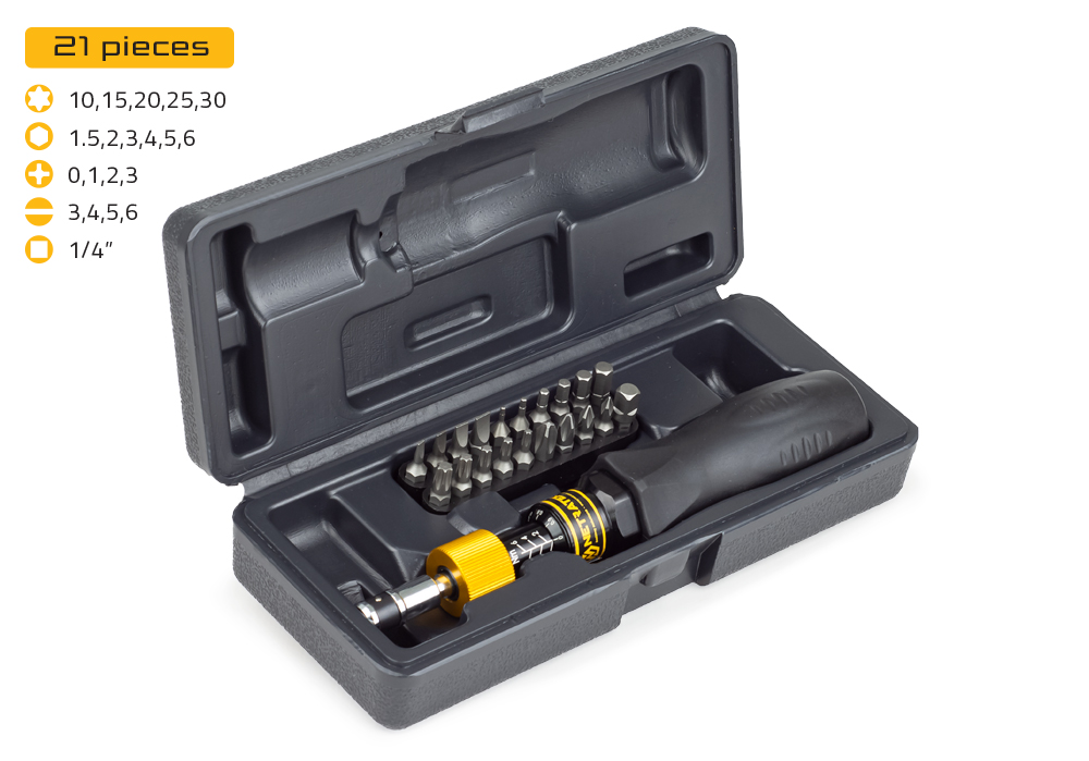 - 0.1 – 10 N.m aralığında 5 farklı torklu tornavida seti