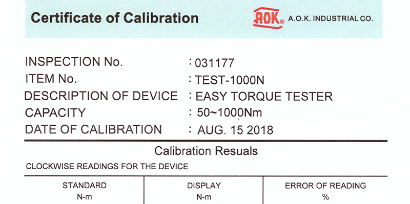 AOK tarafından geliştirilen tork test cihazı en küçük atölyelerden en büyük imalathanelere çözüm sunar. Tork test cihazı üzerinde tork değerini gösteren dijital led ekran dışında herhangi bir buton ya da ayar gerektiren eleman yoktur. Dolayısıyla kullanımı son derece basittir. Cihaz elektriğe bağlanır ve kullanıma hazır hale gelir. Kullanıcının yapması gereken tek şey tork anahtarını doğru tutmak ve tork anahtarını test etmektir. Bu tork test cihazları herhangi bir hataya mahal bırakmamak üzere dizayn edilmiştir. Hem profesyonel hem de amatör kullanıma uygundur.
