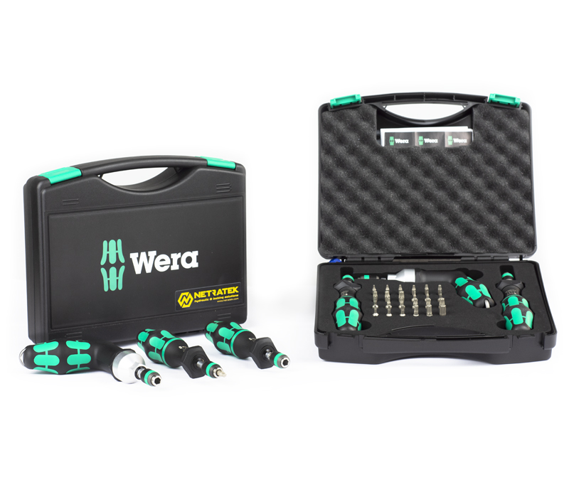 0.3-6 N.m aralığını kapsayan Wera tork ayarlı tornavida seti içerisinde 3 adet cihaz bulunur. Ayrıca 24 adet bits uç yine çanta içinde sunulur. Torx, Torx Plus ve Z Hex Plus uçlar hemen hemen her uygulamada kullanılabilir.